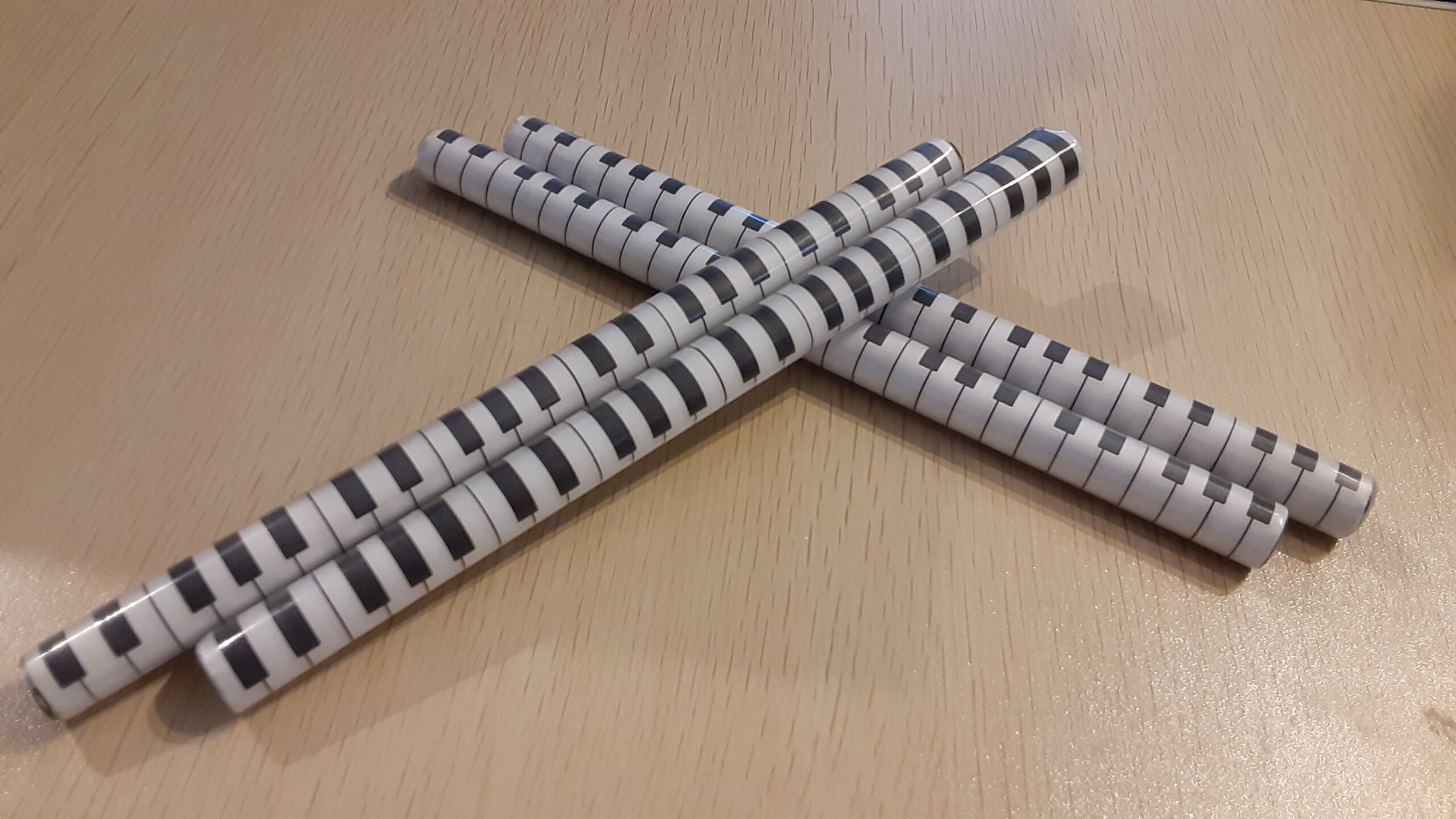 ステックもかわいい鍵盤柄、特殊な加工をしています。万が一噛んでしまっても問題ないです。